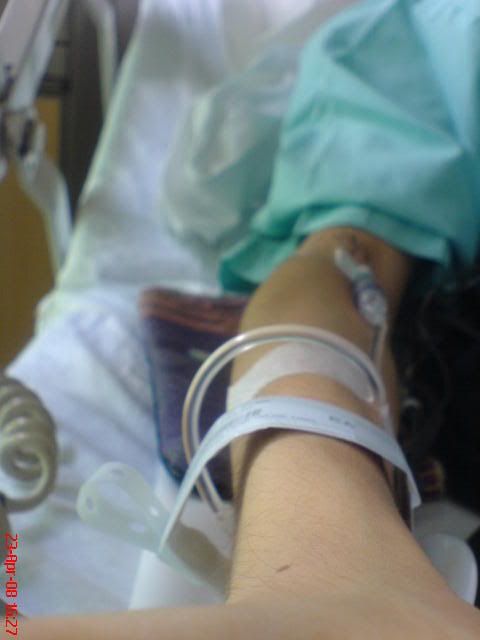 sugar drip I was put on last Wed when I wasn't allowed any food/water. (cos there might be a possibility that I would need to go for an operation)